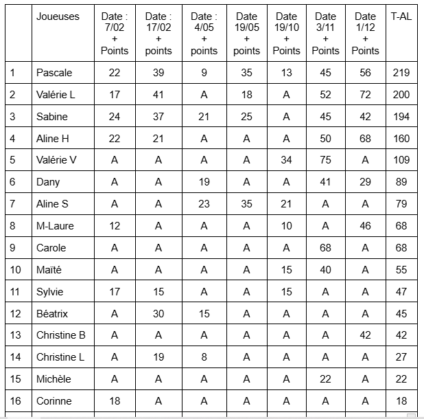 Dimanche 1 er décembre : Champs de Bataille... 7 joueuses... dans la joie et la bonne humeur... Le Podium des Amazones se poursuit, se modifie... et ce n'est pas fini !!!!